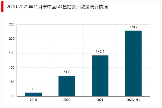目前,中国是全球规模最大、技术最先进的5G独立组网网络,中国5G基站建造数量增幅显著。截至2022年11月底,中国5G基站新增86.2万个,累计开通近229万个5G基站。5G网络已覆盖全国所有地级市和县城城区、87%以上的乡镇镇区。5G技术的传输速率将比4G提升1-2个数量级,传输速率的提升将带动滤波器、功率放大器等射频前端器件用量的提升,一并拉动电感、电容等相关电子元件的使用量。