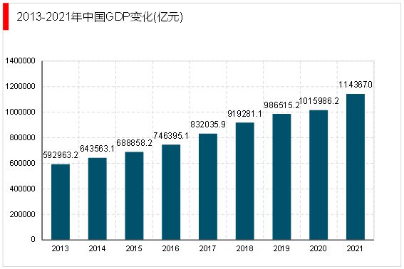 电子元器件下游应用领域丰富,覆盖了国民经济的众多领域,其受宏观经济形势的影响较大,行业周期与整个宏观经济的运行周期基本一致。中国GDP历年来呈现不断上涨的趋势,2021年,中国GDP已达到1143670亿元,同比增长率为12.56%。 摘自锐观网《中国电子器件产业链布局全景梳理与招商策略建议深度研究报告》