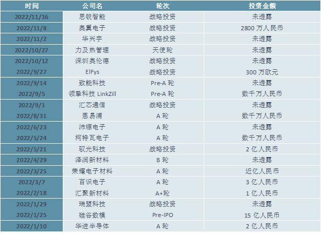 2022年1-12月共发生20起投资事件。当年已披露投资金额最大的事件为硅谷数模收到的Pre-IPO投资,金额达15亿人民币。